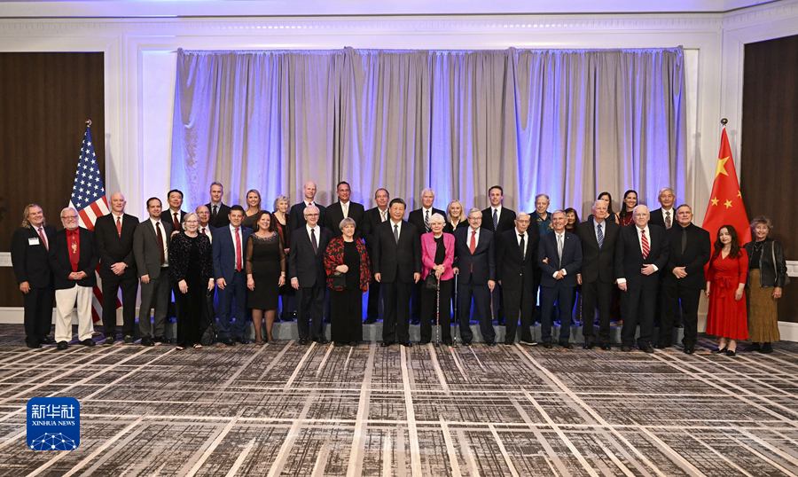 當地時(shí)間11月15日晚,國家主席習近平在美國舊金山出席美國友好團體聯(lián)合舉行的歡迎宴會(huì )。這是宴會(huì )開(kāi)始前,習近平會(huì )見(jiàn)飛虎隊和史迪威將軍后人、鼓嶺、艾奧瓦州、華盛頓州等方面友好人士代表,同他們親切交談并合影留念。
