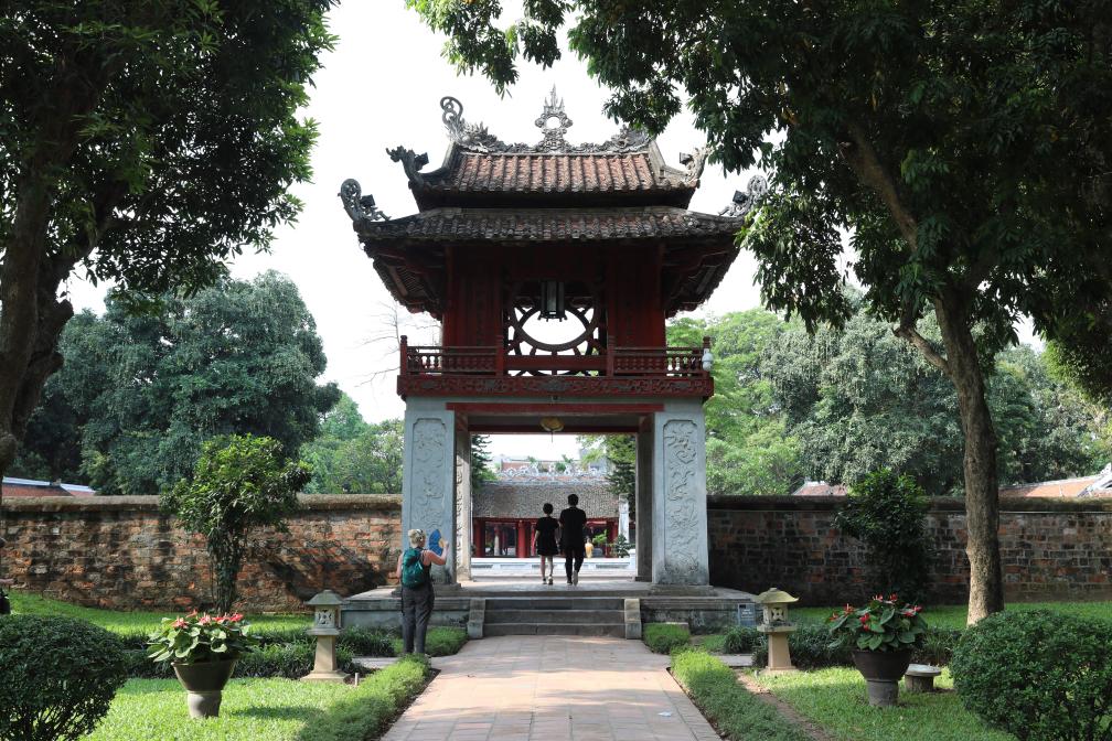 中越人文交往源遠流長(cháng),代代傳承。文廟內懸掛“萬(wàn)世師表”的殿堂前,一群河內高中生簇擁著(zhù)老師發(fā)出熱情歡呼,為自己的青春歲月留下一張珍貴的合影。
