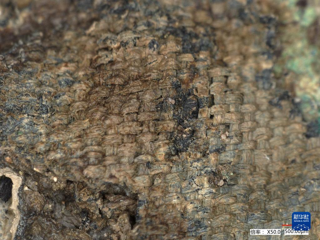 這是位于四川省廣漢市的三星堆祭祀區考古發(fā)掘現場(chǎng)8號“祭祀坑”青銅殘片上的絲綢殘留物。新華社發(fā)(四川省文物考古研究院供圖)