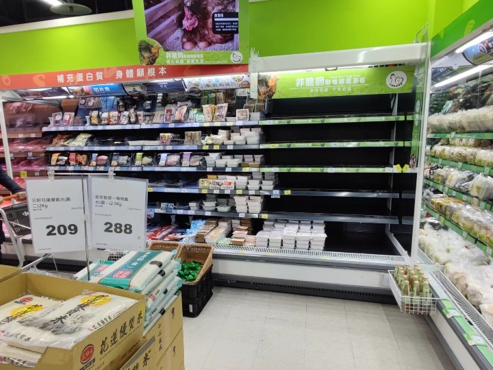 2月22日,在臺灣臺北的一家超市內,雞蛋貨架上空空如也。新華社記者 黃揚 攝