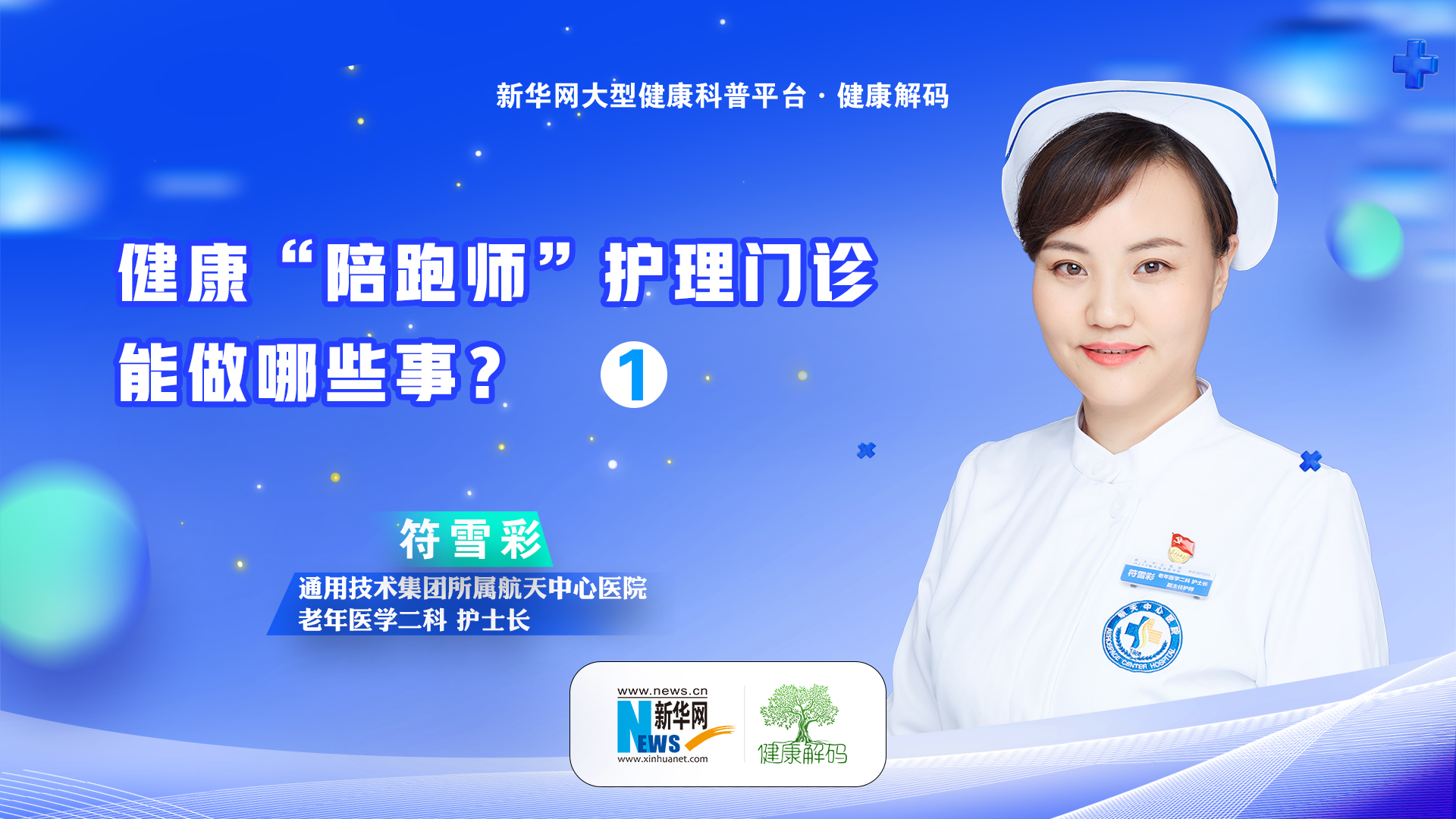 "??本集我們邀請了通用技術(shù)集團所屬航天中心醫院老年醫學(xué)二科護士長(cháng)、主任護師符雪彩分享《健康“陪跑師”護理門(mén)診 能做哪些事。"