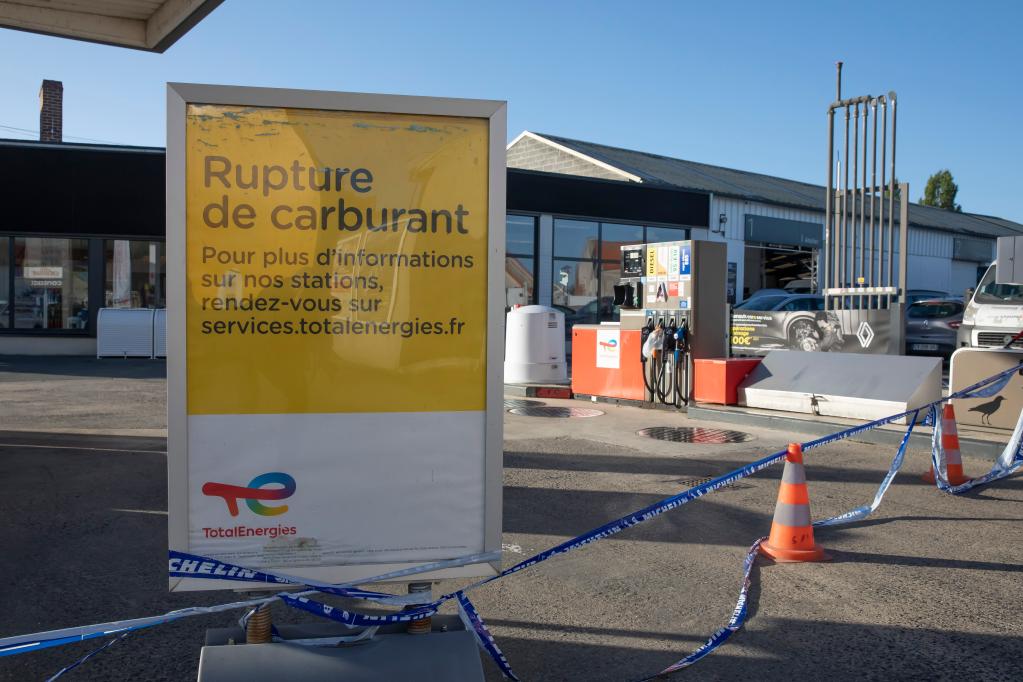 這是10月6日在法國北部上法蘭西大區萊斯特朗鎮拍攝的一處因燃油供應中斷而暫時(shí)關(guān)閉的道達爾集團旗下的加油站。新華社發(fā)(塞巴斯蒂安·庫爾吉攝)