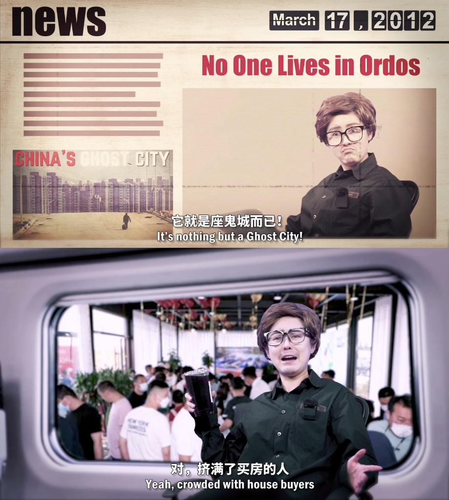 現實(shí)生活中,有很多外媒面對中國的發(fā)展進(jìn)步,選擇裝聾作啞、吹毛求疵,甚至指鹿為馬、混淆是非?!皣缧〗憬恪蓖ㄟ^(guò)這部一人分飾多角的諷刺劇,對這些反華聲音進(jìn)行“嚴肅的戲謔”,“一本正經(jīng)的調侃”,可謂一針見(jiàn)血。
