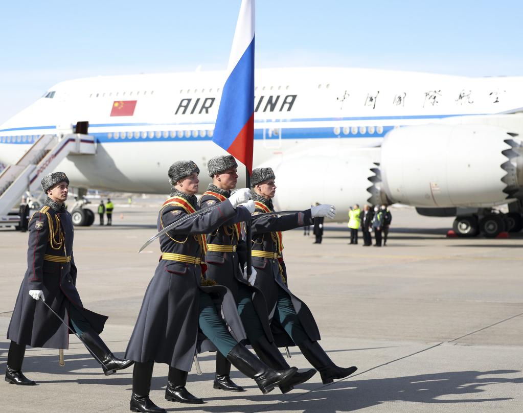 新華社莫斯科3月20日電 3月20日,莫斯科暖陽(yáng)高照。當天下午,國家主席習近平乘專(zhuān)機抵達莫斯科,開(kāi)始對俄羅斯進(jìn)行國事訪(fǎng)問(wèn)。俄方在機場(chǎng)舉行隆重迎賓儀式。
