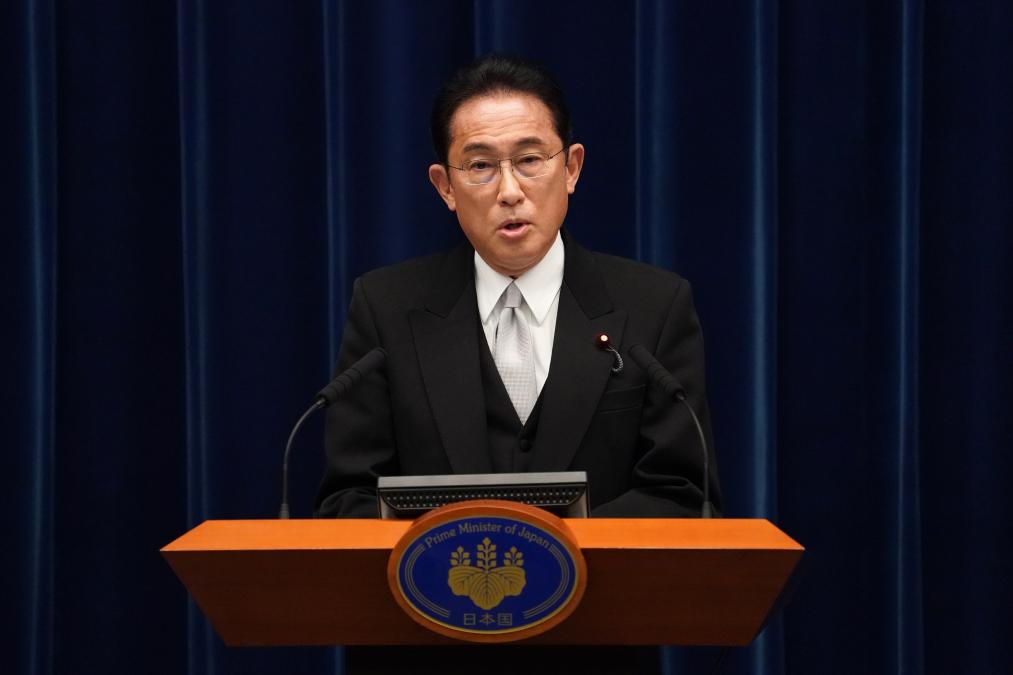 2021年10月4日,日本首相岸田文雄在日本東京首相官邸召開(kāi)記者會(huì )。新華社發(fā)(Pool圖片/花井亨攝)