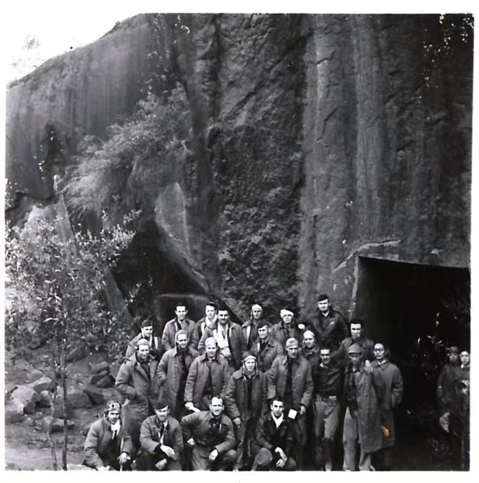 被中國百姓營(yíng)救的部分美國飛行員集中在位于衢州的空軍航空第13總站門(mén)口合影。(資料圖)