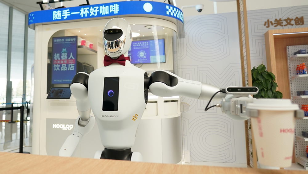一款蓋博特機器人在為“顧客”送咖啡